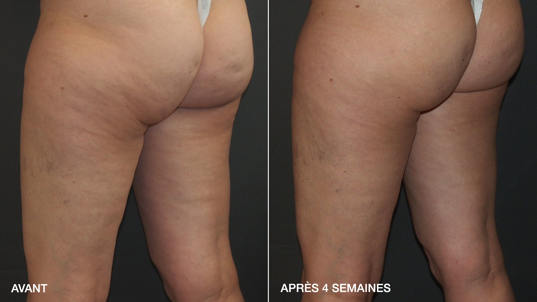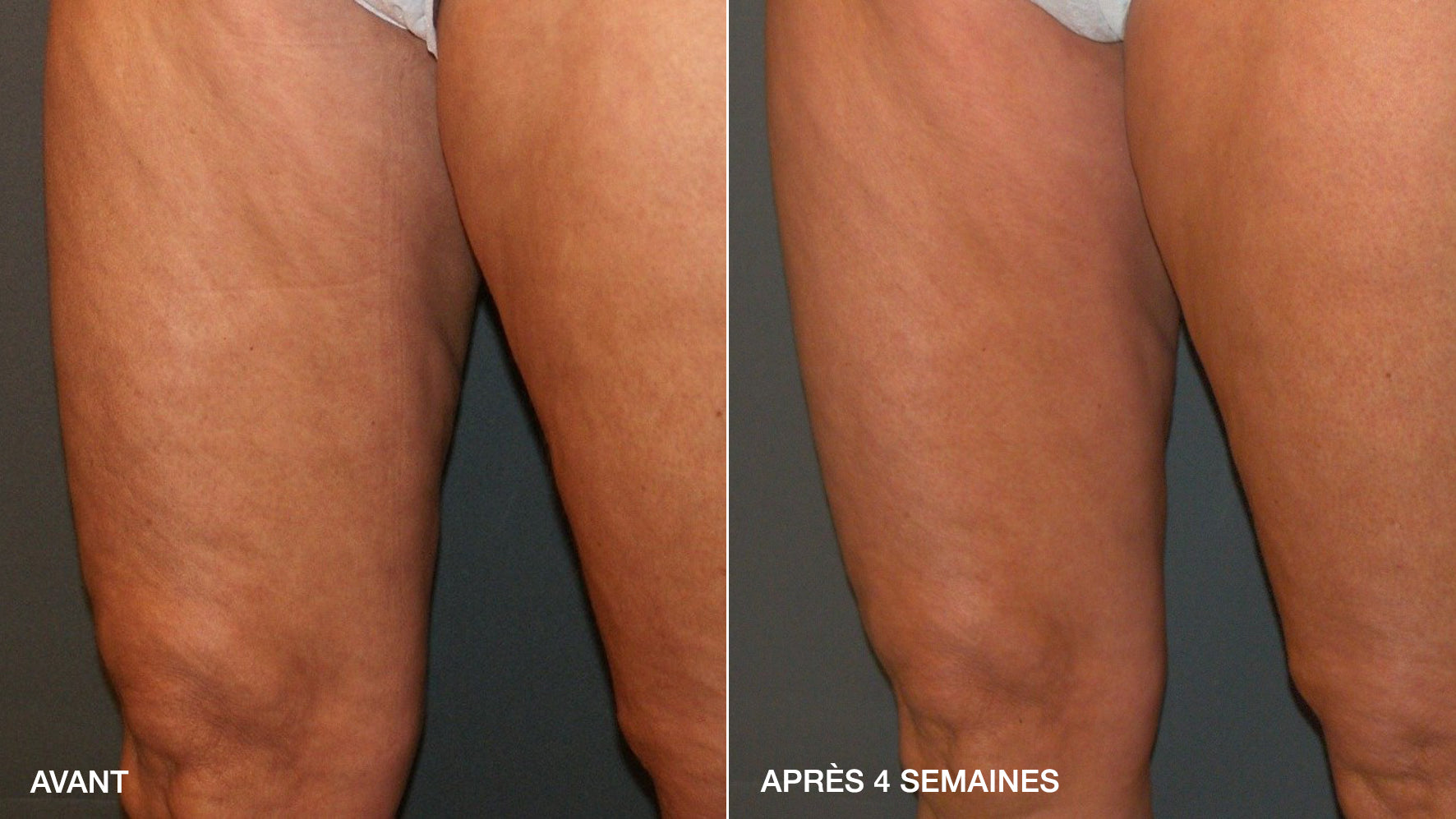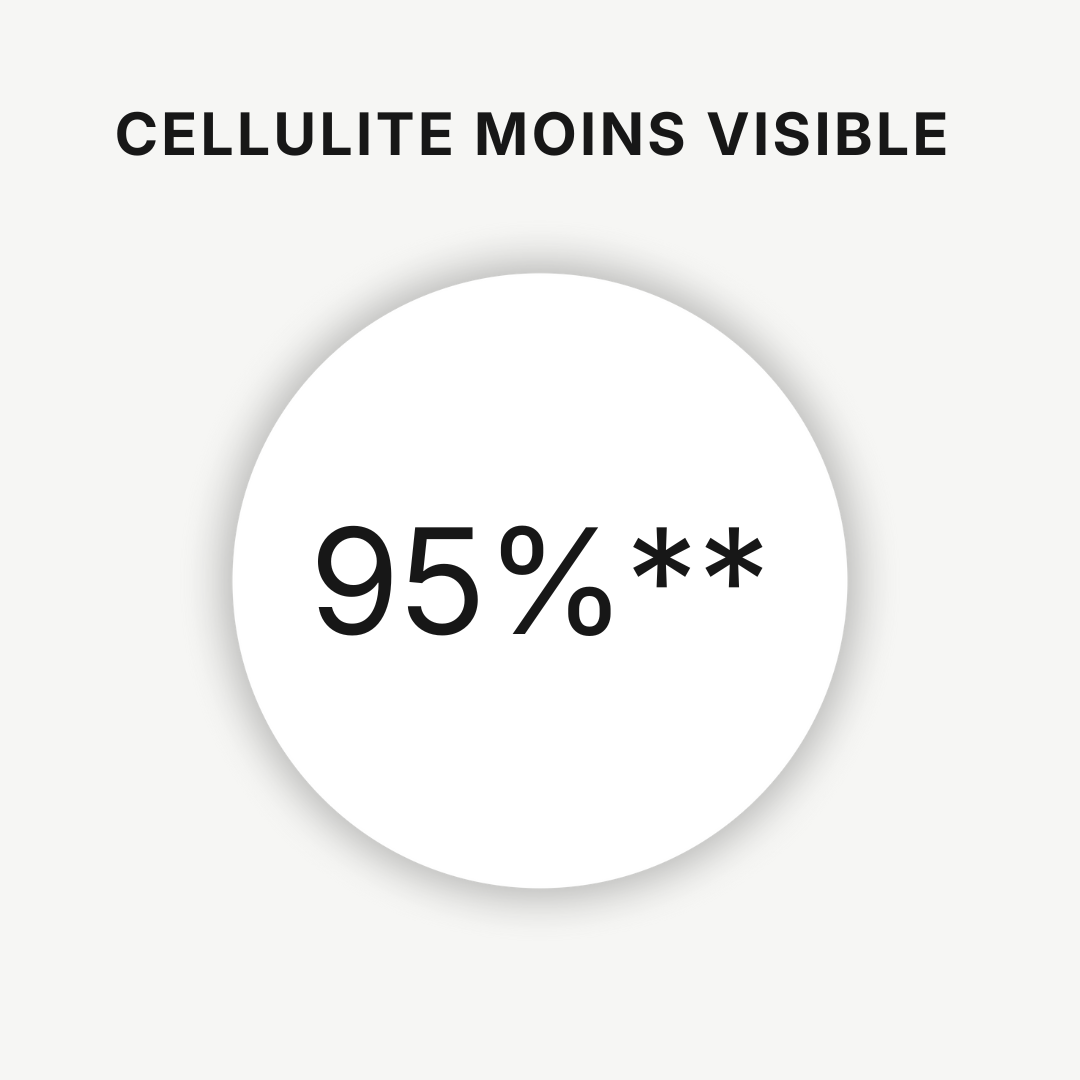 *Mesures de circonférence réalisées dans le cadre d’une étude clinique sur 10 femmes âgées de 30 à 60 ans, pendant 4 semaines. Une réduction du tour de cuisses a été observée chez 9 volontaires sur 10 et du tour de hanches chez 7 volontaires sur 10.